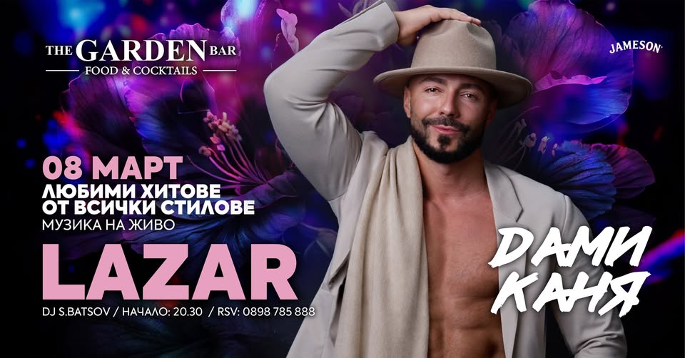 с чаровния и талантлив LAZAR, който ще ви забавлява с любима музика от всички стилове и от Балканите. Ще има песни, ще има танци и ще направим така, че ще лекуваме бръчки от старост и ще създаваме нови от усмивки...